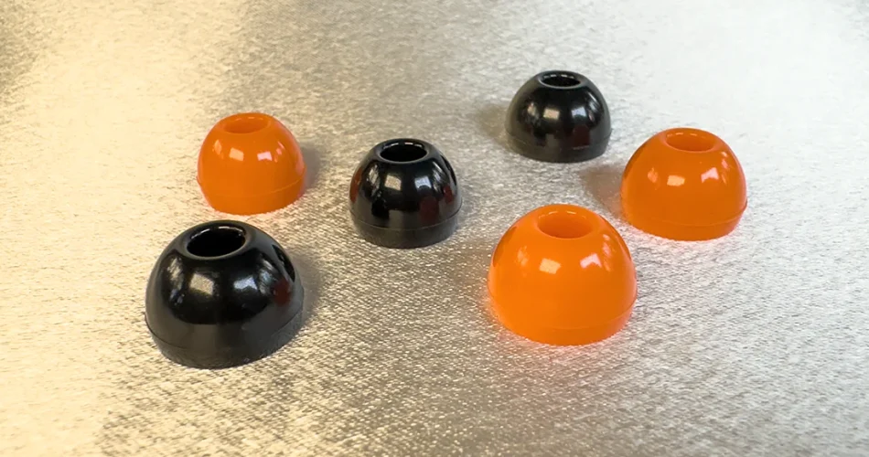 Penon Liqueur eartips come in two varieties – orange and black. Both are similarly shaped but the black ones have thicker walls. Which means the Black Liqueurs provide a stronger seal and better noise isolation, at the cost of being more rigid & slightly less comfortable.